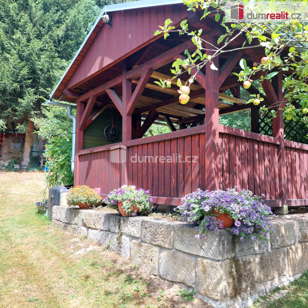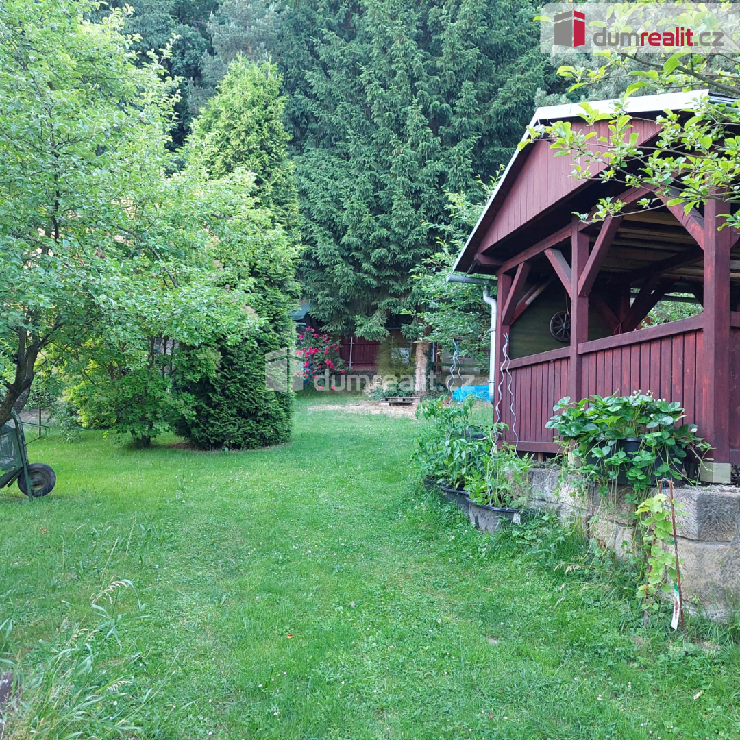 Dumrealit.cz Vám zprostředkuje prodej zahrady v osobním vlastnictví. Samotný pozemek sestává z několika parcel, které tvoří velký celek, jehož součástí jsou dvě stavby vedle sebe ( s pevnými základy) vedené pod číslem evidenčním. Podle tohoto aktuálního stavu lze vycházet i při určitých přestavbách těchto objektů. Dále na pozemku najdete krásnou dřevěnou pergolu, pěkně vyvedený krb s grilem a udírnou. Taktéž zde nechybí precisně postavená ozdobná zahradní toaleta z tvrdého dřeva. Údržba toalety je jednoduchá a šetrná k přírodě. Na pozemek je přivedena elektřina a zároveň i pitná voda, která ústí do kohoutu vyvedeného vedle pergoly (pitnou vodu dodává společnost Severočeské vodovody a kanalizace, a.s. (SčVK) z vodovodu pro veřejnou potřebu a její užívání je tedy celoroční nezávisle na sezóně).Samozřejmě lze napojit tedy i do objektu. Všechny stavby na pozemku jsou legální a jejich stavbu lze doložit. Zahradu je libo využít dle uvážení - částečně okrasnou a částečně pěstební. Velikost pozemku je zcela dostačující. Majitel má spoluvlastnický podíl na příjezdové cestě a autem lze v pohodě dojet až na pozemek a zde i parkovat. Zahrada je potěšením pro každého milovníka zahrádkaření. Zde najdete vše. Nicméně nejdůležitější je mít potěšení ze soukromí a krásné relaxace. Nemovitostí Vás ráda provedu. Neváhejte a sjednejte si prohlídku v tomto krásném letním čase. Ev. číslo: 651771.