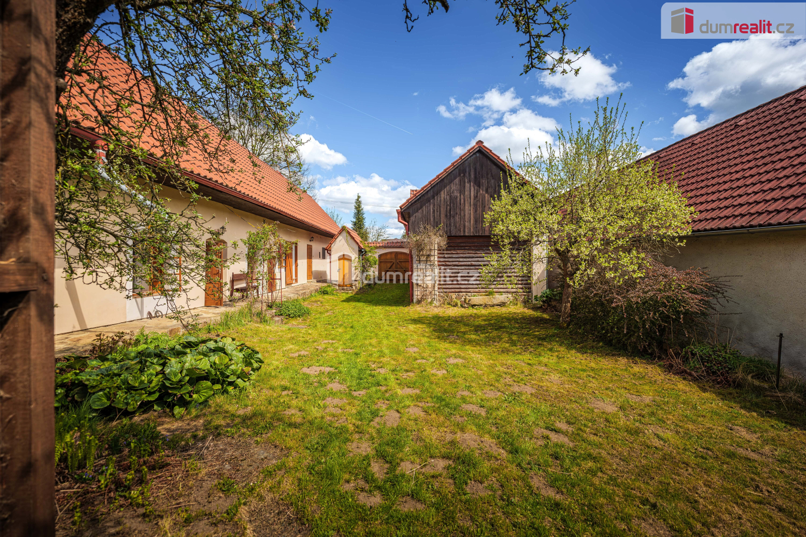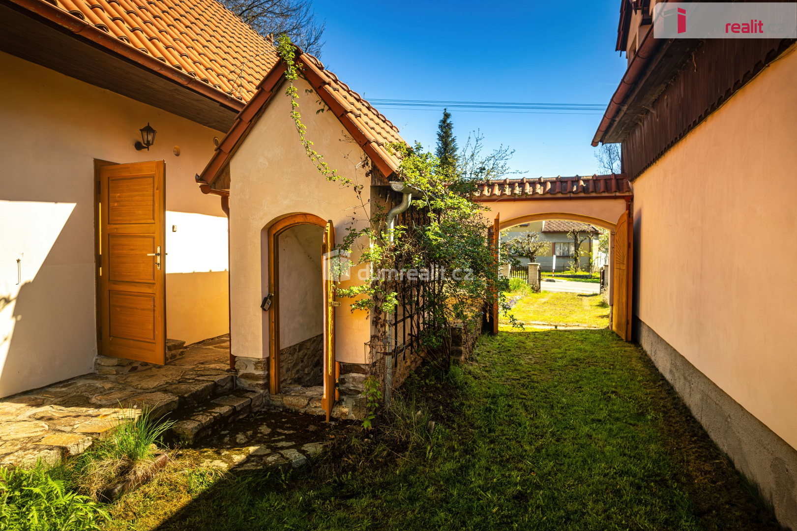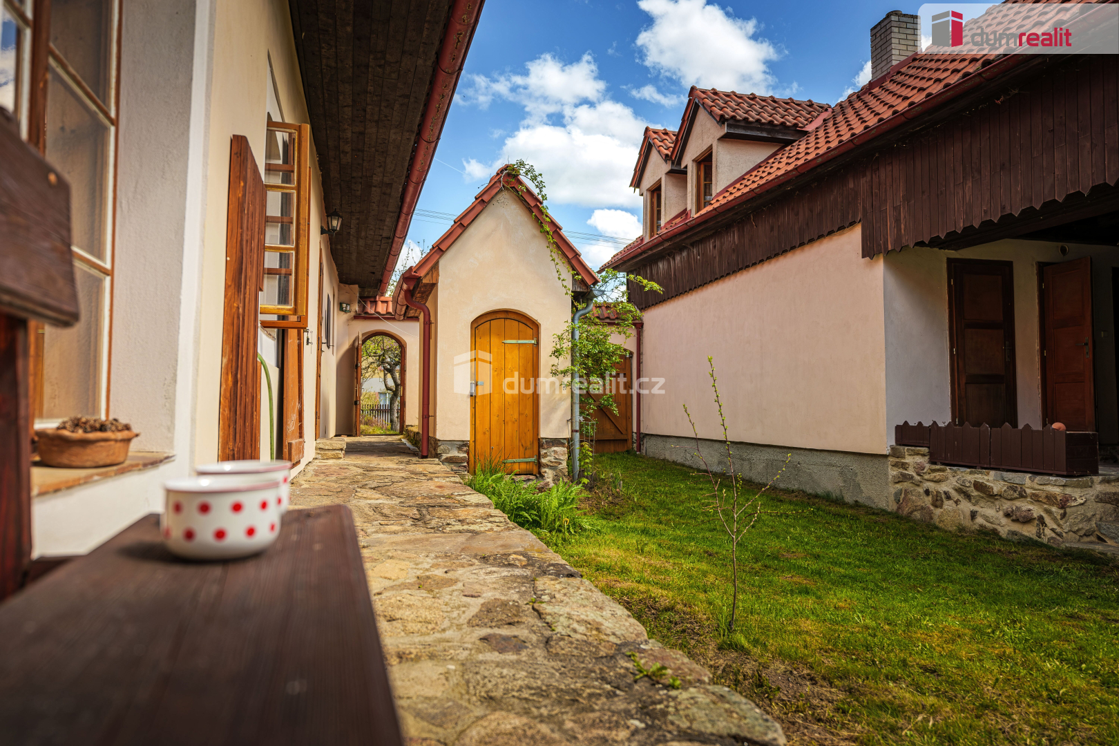 - nádvoří s trávníkem, studnou (protože vody není nikdy dost!) a sklípkem na víno nebo jiné dobroty,