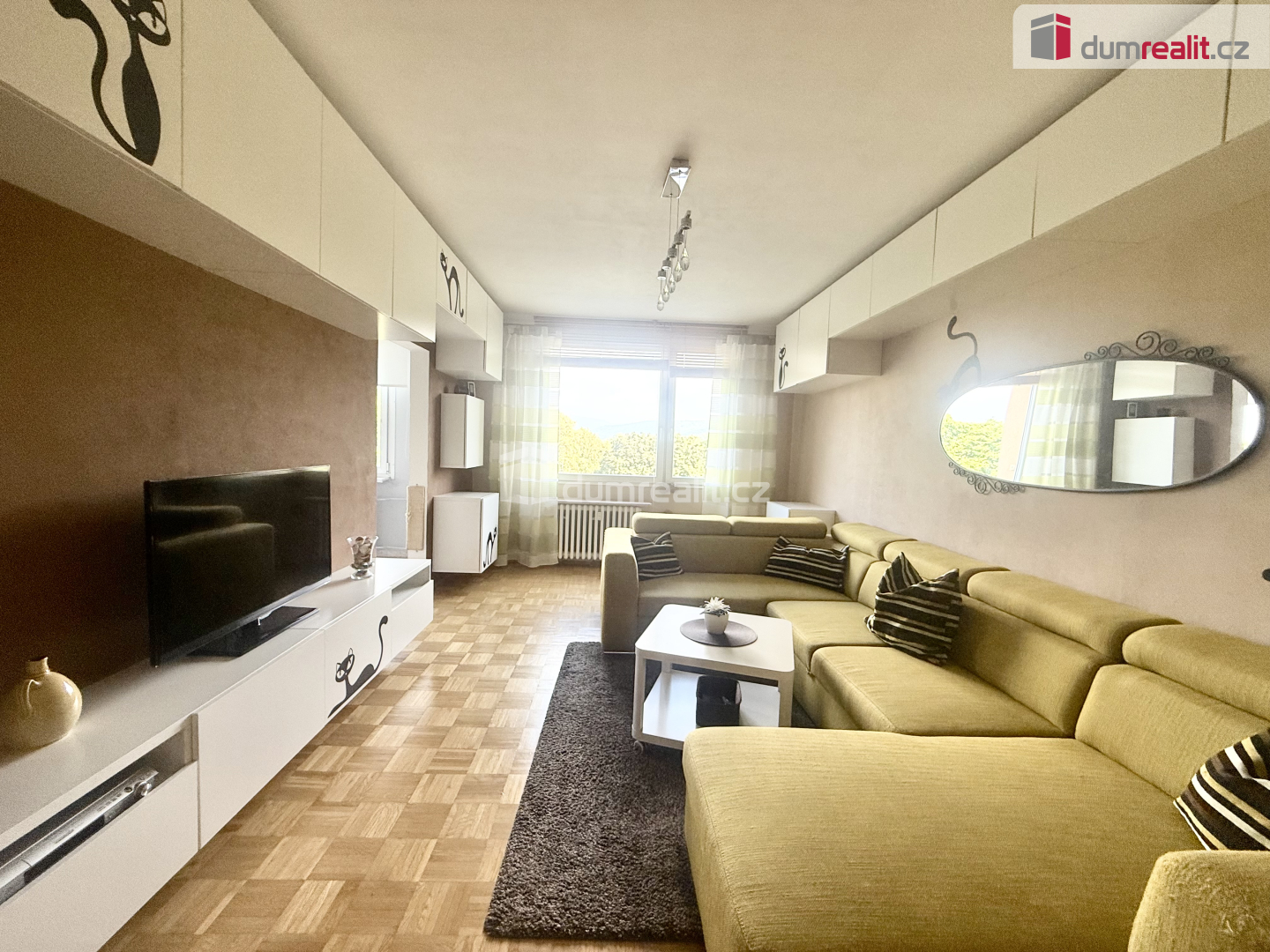Byt je prostorný, světlý a kompletně zařízený nábytkem i spotřebiči. V obývacím pokoji je pohodlný gauč, konferenční stolek a televize, v ložnici velká manželská postel a prostorná šatní skříň, v dětském pokoji dvoupatrová postel a psací stůl. Předsíň nabízí dostatek úložného prostoru díky vestavěným skříním. Kuchyně je plně vybavená – nechybí myčka, mikrovlnná trouba, toustovač, stůl se židlemi a samozřejmě veškeré nádobí a kuchyňské potřeby včetně talířů a skleniček. K bytu dále náleží velice prostorný sklep.